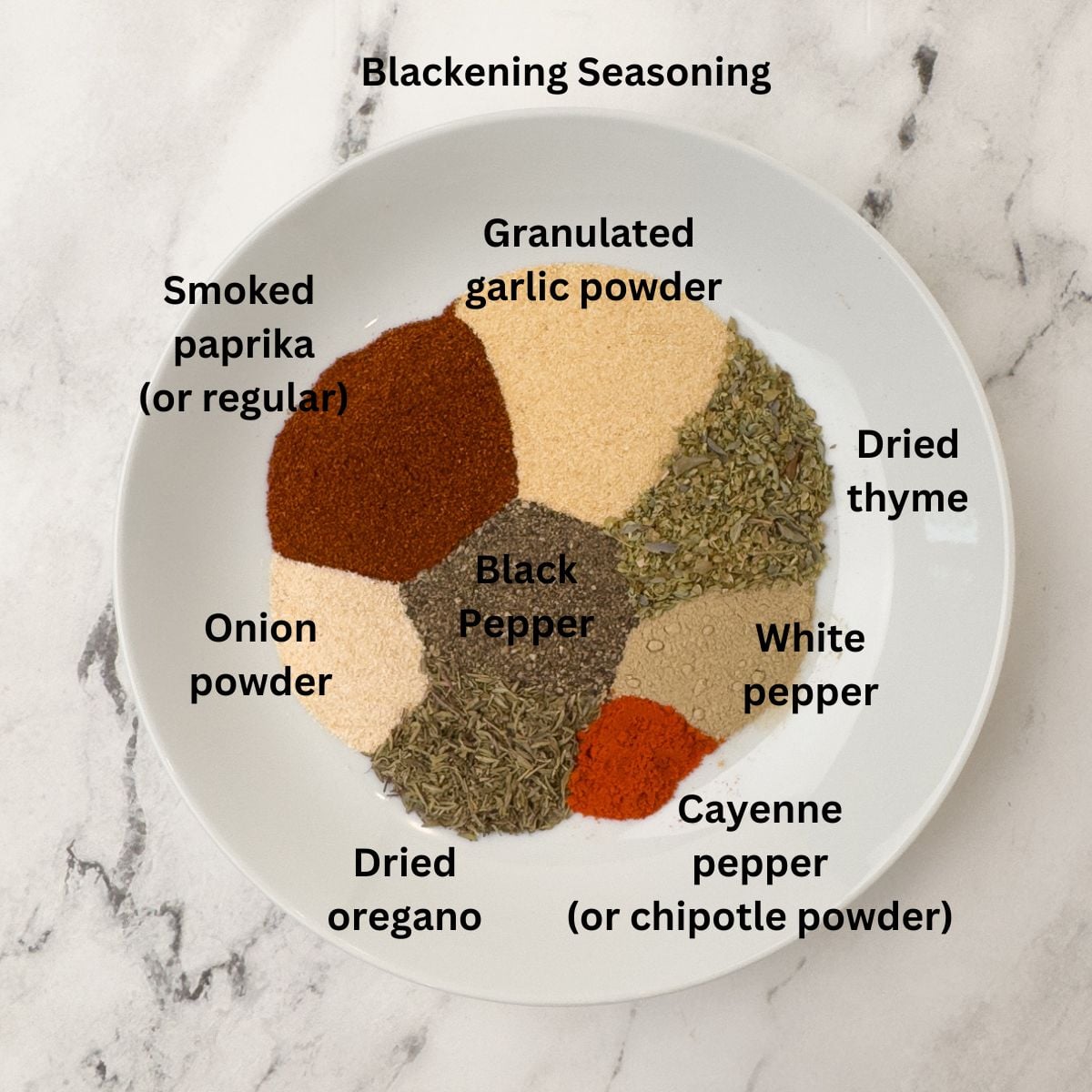 - Smoked paprika - gives the blend its signature color and rich, smoky depth. For a more traditional Cajun flavor, you can swap in sweet paprika.